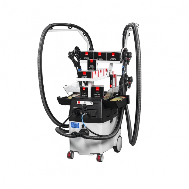 Το νέο σύστημα σταθμού εργασίας για την επαγγελματική σκούπα KS 300 παρέχει ακόμα περισσότερη υποστήριξη στον χειριστή. Εξασφαλίζει ότι όλα τα απαραίτητα εργαλεία, αναλώσιμα και αξεσουάρ βρίσκονται συνεχώς στη διάθεσή σας κατά την εργασία.
