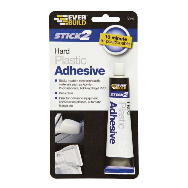 To Stick2 Hard Plastic Adhesive είναι ισχυρό, διάφανο συγκολλητικό με γρήγορο στέγνωμα, κατάλληλο για συγκόλληση των περισσοτέρων τύπων πλαστικών, όπως σκληρό PVC, ακρυλι- κά, πολυκαρβονικά και ABS. Ιδανικό για σωληνώσεις εξαρτήματα αυτοκινήτων και οικιακές εφαρμογές. ΣΥΣΚΕΥΑΣΙΑ: 30 ML ΧΡΩΜΑ: ΔΙΑΦΑΝΕΣ