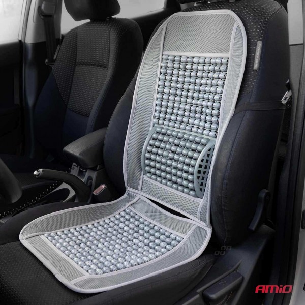 ΠΛΑΤΟΚΑΘΙΣΜΑ ΜΕ ΧΑΝΤΡΕΣ ΚΑΙ ΜΑΞΙΛΑΡΑΚΙ ΜΕΣΗΣ ΠΟΛΥΕΣΤΕΡΙΚΟ ΥΦΑΣΜΑ 97x44cm ΓΚΡΙ  AMIO - 1 Τεμ. Πλατοκάθισμα με χάντρες και μαξιλάρακι μέσης από πολυεστερικό ύφασμα σε γκρι χρώμα, από την εταιρεία ΑΜΙΟ, πολωνικής προέλευσης. Eξασφαλίζει άνεση στο ταξίδι ακόμα και σε υψηλότερες θερμοκρασίες. Τα στοιχεία με χάντρες αυξάνουν την άνεση και την οδηγική άνεση δημιουργώντας χώρο αναπνοής μεταξύ του καθίσματος και του οδηγού. Επιπλέον, η δομή των ξύλινων χαντρών έχει μυοχαλαρωτικές ιδιότητες. -Γκρι χρώμα -Διαστάσεις: 97 x 44 cm -Κατασκευασμένο από υλικά που καθαρίζονται εύκολα: πολυεστερικό ύφασμα και σφουγγάρι. -Universal μέγεθος το κάνει να ταιριάζει στα περισσότερα αυτοκίνητα.   Συσκευασία 1 τεμαχίου