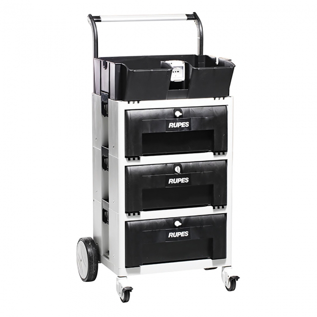 Το RUPES Carrier System είναι ένας τροχήλατος εργαλειοφορέας γυαλίσματος με 3 συρτάρια, ιδανικός για την οργάνωση και την εύκολη πρόσβαση στα υλικά γυαλίσματος. Διαθέτει αρθρωτό σχεδιασμό, ενσωματωμένη πρίζα και τέσσερις περιστρεφόμενους τροχούς για μέγιστη ευελιξία στο συνεργείο.