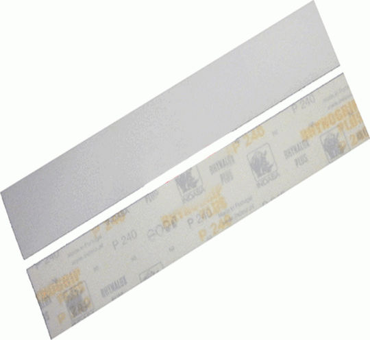 Tαινία λείανσης πολυεργαλείου της εταιρίας Indasa. Οι κόκκοι λείανσης (κόκκωση), που περιέχονται ανά τετραγωνικό χιλιοστό στο προϊόν, ανέρχονται στους K40. Όσο μεγαλύτερο είναι το νούμερο του γυαλόχαρτου, τόσο μεγαλύτερη είναι η πυκνότητα των κόκκων ανά τετραγωνικό χιλιοστό. Οπότε στα μικρά νούμερα (π.χ. 24, 36, 40…),έχουμε λίγους κόκκους αλλά μεγάλης διαμέτρου που τα καθιστούν ιδανικά για γρήγορη εξομάλυνση τραχιών επιφανειών, ενώ στα μεγάλα νούμερα (π.χ. 180, 220, 320…), έχουμε περισσότερους κόκκους με μικρότερη διάμετρο και είναι ιδανικά για έντονη λείανση και ομαλό φινίρισμα. Πρέπει επίσης να γνωρίζετε ότι κατά το τρίψιμο με το τριβείο η δράση είναι σαφώς μεγαλύτερη απ’ ό,τι με το χέρι. Οι διαστάσεις του είναι 70x450mm. Η συσκευασία περιέχει 1τμχ.