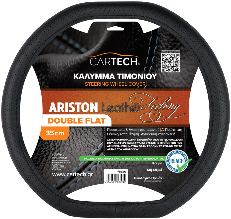 ΚΑΛΥΜMA ΤΙΜΟΝΙΟΥ ARISTON LEATHER FEELING DOUBLE FLAT ΜΑΥΡΟ W/REACH