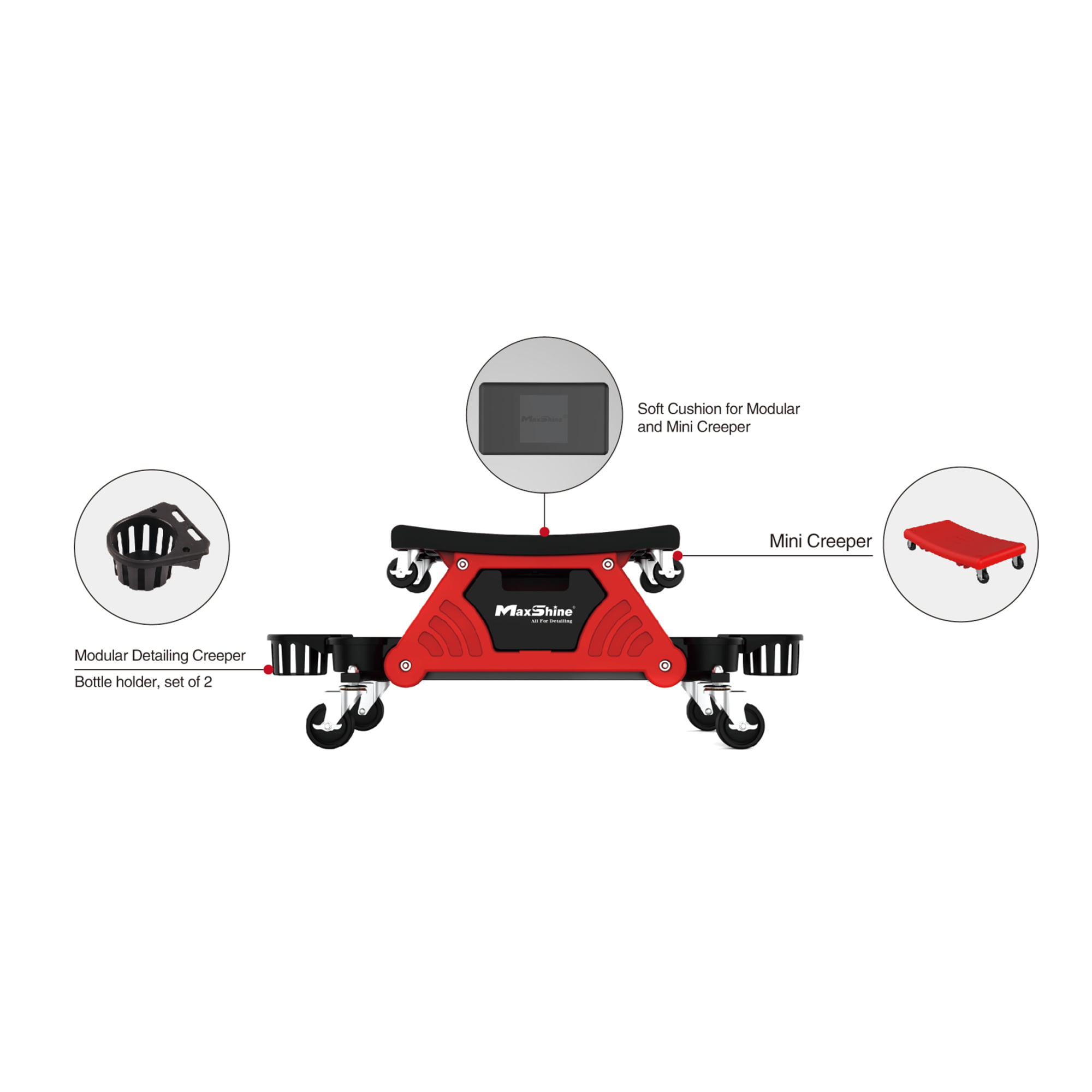 Το Τροχήλατο κάθισμα Detailing της Maxshine προσφέρει μια άνετη θέση εργασίας για μηχανικές ή εργασίες detailing. Είτε αλλάζετε τροχούς, κάνετε σέρβις στα φρένα ή detailing στα μαρσπιέ, στους τροχούς και στα φανάρια, το Τροχήλατος κάθισμα Detailing θα κάνει την εργασία ευκολότερη.