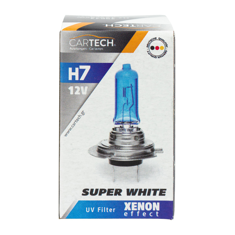 Η λάμπα H7 – 12V/55W – PX26d SUPER WHITE προσφέρει έντονο και καθαρό λευκό φως, χάρη στην τεχνολογία SUPER WHITE. Ιδανική για φώτα πορείας, φώτα προβολέα ή άλλες εφαρμογές φωτισμού σε αυτοκίνητα, αυτή η λάμπα λειτουργεί σε τάση 12V και διαθέτει βάση PX26d, η οποία εξασφαλίζει εύκολη και ασφαλή τοποθέτηση. Προσφέρει εξαιρετική ορατότητα και βελτιωμένη φωτεινότητα, κάνοντάς την ιδανική για οδηγούς που επιθυμούν καλύτερη απόδοση φωτισμού στο δρόμο.