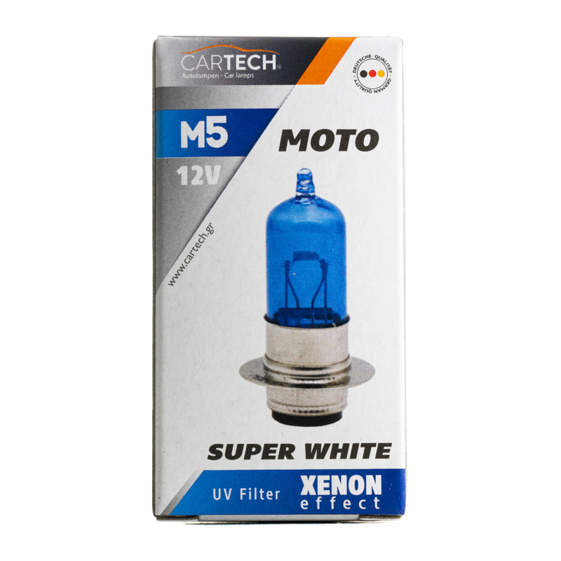 Η λάμπα M5 12V/35W SUPER WHITE προσφέρει ισχυρό και καθαρό λευκό φως με την τεχνολογία SUPER WHITE. Ιδανική για φώτα μοτοσικλέτας ή άλλες εφαρμογές φωτισμού, λειτουργεί σε τάση 12V με ισχύ 35W και παρέχει εξαιρετική ορατότητα και ασφάλεια στον δρόμο. Το καθαρό λευκό φως βελτιώνει την αντίληψη των οδικών συνθηκών και προσφέρει μεγαλύτερη ακρίβεια και ευκρίνεια στην οδήγηση.