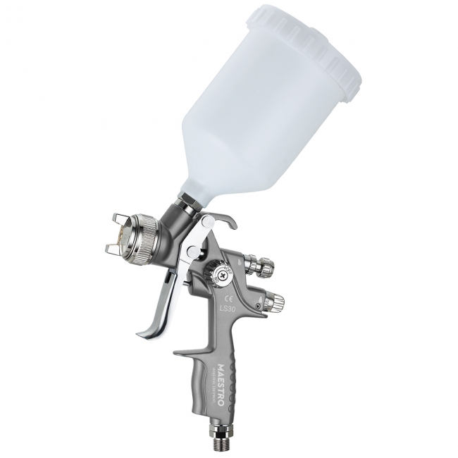 LS30 HVLP ? Σφυρήλατο σώμα αλουμινίου, γυαλισμένο και ανοδιωμένο ? Το στιβαρό καπάκι αέρα είναι κατασκευασμένο από επιχρωμιωμένο ορείχαλκο, ενώ το σετ μπεκ είναι κατασκευασμένο από σκληρυμένο ανοξείδωτο χάλυβα. ? Όλα τα στοιχεία ελέγχου μπορούν να λειτουργήσουν εύκολα ? 360° Περιστρεφόμενη άρθρωση ? Βελτιωμένη απόδοση ψεκασμού ? Ιδανικό για χρώματα αυτοκινήτων, βιομηχανικές βαφές και βαφές επίπλων - υλικά επιπλοποιΐας ? Χωρητικότητα κάδου 0,6 Lt ? ΜΠΕΚ: 1,3 3BAR 43PSI 12-15CFM