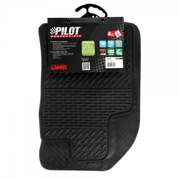 Πατάκια αυτοκινήτου από την εταιρία LAMPA, ιταλικής προέλευσης, κατασκευασμένα από υψηλής ποιότητας άοσμο λάστιχο, το οποίο είναι εξαιρετικής αντοχής, σχεδιασμένα για να ταιριάζουν ακριβώς στις διαστάσεις του δαπέδου του εκάστοτε οχήματος (μαρκέ). Διαθέτουν αντιολισθητικό πάτο για να παραμένουν σταθερά χωρίς να μετακινούνται κατά την είσοδο και έξοδο από το όχημα. Κατάλληλο αξεσουάρ αυτοκινήτου για όλες τις εποχές, ανθεκτικά στο πέρας του χρόνου, παρέχουν προστασία από βρωμιά, σκόνη, λάσπες και υγρασία. Πλένονται και καθαρίζονται πολύ εύκολα, διατηρώντας το αρχικό τους σχήμα. Διαθέτουν κουμπώματα (fixing buttons) για καλύτερη σταθερότητα και πρόσφυση στο δάπεδο. Εύκολη και γρήγορη τοποθέτηση.