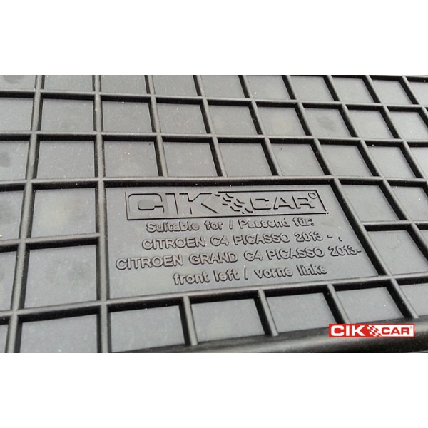 Πατάκια αυτοκινήτου από την εταιρία CIK, πολωνικής προέλευσης, σχεδιασμένα για να ταιριάζουν ακριβώς στις διαστάσεις του εκάστοτε οχήματός (μαρκέ) και κατασκευασμένα από υψηλής ποιότητας αντιχαρακτικό λάστιχο σε μαύρο χρώμα, χαρίζοντας εξαιρετική αντοχή για χρήση μακράς διάρκειας. Έχουν αντιολισθητικό πάτο με υποδοχές για κουμπώματα (αν διαθέτει το αυτοκίνητο) για καλύτερη σταθερότητα και πρόσφυση στο δάπεδο, ώστε να παραμένουν σταθερά χωρίς να μετακινούνται από τη θέση τους κατά την είσοδο/έξοδο των επιβατών. Το ανάγλυφο μοτίβο και οι ελαφρώς ανασηκωμένες άκρες τους διατηρούν το εσωτερικό της καμπίνας καθαρό, συγκρατούν όλη τη βρωμιά, σκόνη, λάσπες, υγρασία, κτλ. και κάνουν την αφαίρεση των ρύπων πολύ πιο εύκολη κατά το καθάρισμα. Είναι κατάλληλα για όλες τις εποχές, ανθεκτικά στο χρόνο και παρέχουν υψηλή προστασία. Πλένονται και καθαρίζονται πολύ εύκολα, διατηρώντας το αρχικό τους σχήμα. Εύκολη και γρήγορη τοποθέτηση.
