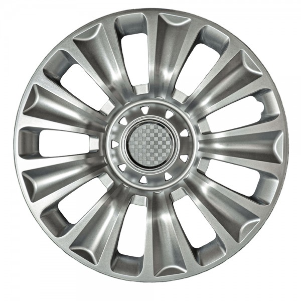 Κατασκευασμένα από υψηλής ποιότητας ενισχυμένο άθραυστο πλαστικό, απόλυτα ελαστικά, βαμμένα σε ασημί γυαλιστερό χρώμα, εξοπλισμένα με νίκελ δακτυλίδια για να στερεωσέτε το σήμα της εκάστοτε μάρκας και ειδική εγκοπή για τη βαλβίδα του αέρα των ελαστικών του οχήματος.