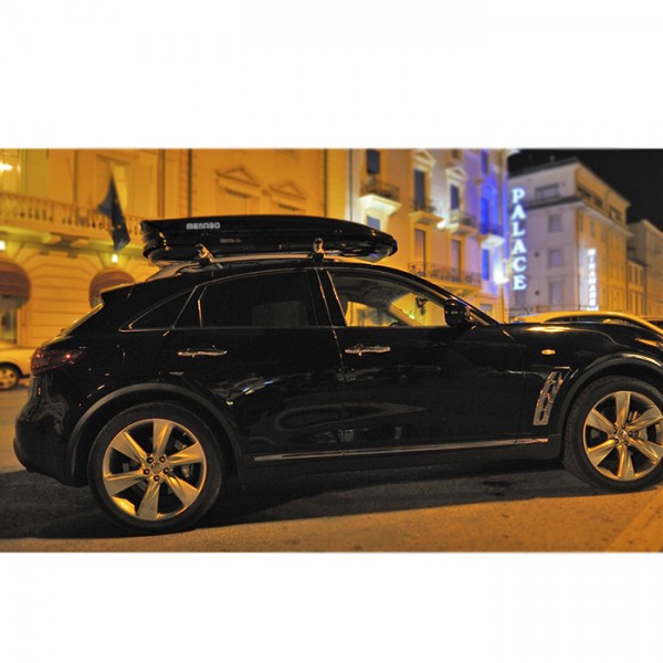 Μπαγκαζιέρα οροφής της σειράς MANIA από την εταιρία MENABO, 100% ιταλικής προέλευσης και κατασκευής από υψηλής ποιότητας ABS ανθεκτικό πλαστικό σε μαύρο χρώμα με γυαλιστερή υφή και χωρητικότητα φορτίου 460 lt. Ιδανική επιλογή για τη δημιουργία επιπρόσθετου αποθηκευτικού χώρου κατά τη διάρκεια ταξιδιού ή και για μεταφορές εντός πόλης, ώστε να έχετε τον απαραίτητο εξοπλισμό σας πάντα μαζί!