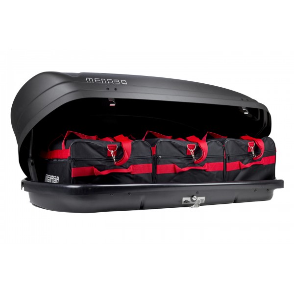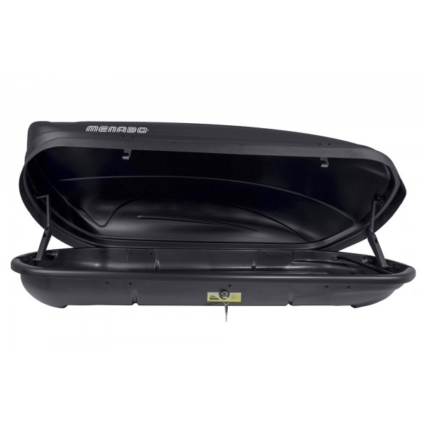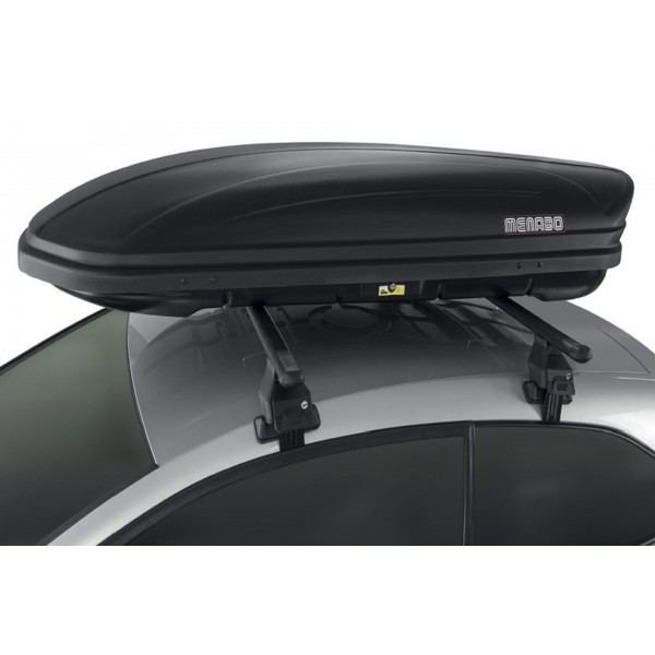 Μπαγκαζιέρα οροφής της σειράς MARATHON από την εταιρία MENABO, 100% ιταλικής προέλευσης και κατασκευής από υψηλής ποιότητας ABS πλαστικό σε μαύρο χρώμα με ματ, ανάγλυφη υφή. Ένα προϊόν υψηλής αισθητικής, που διαθέτει: