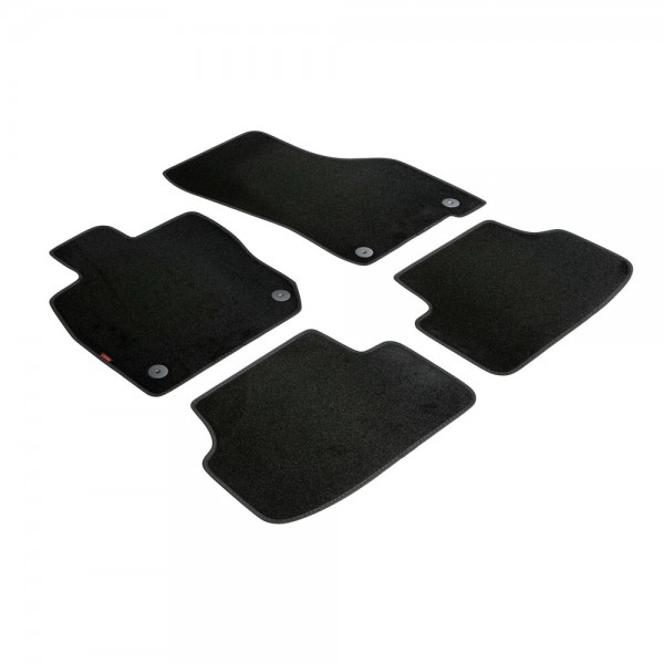 Πατάκια αυτοκινήτου από την εταιρία LAMPA, ιταλικής προέλευσης, κατασκευασμένα από υψηλής ποιότητας μοκέτα - 100% πολυπροπυλένιο - σε μαύρο χρώμα με περιμετρικό φινίρισμα από βελούρ ρέλι (απομίμηση βελούδου), σχεδιασμένα για να ταιριάζουν ακριβώς στις διαστάσεις του δαπέδου του εκάστοτε οχήματος - Συμβατά προϊόν. Είναι αδιάβροχα και διαθέτουν αντιολισθητικό πάτο ενισχυμένο με gel στο πίσω μέρος τους για καλύτερη πρόσφυση στο δάπεδο, καθώς και κουμπιά στερέωσης fix-points για όσα οχήματα είναι εξοπλισμένα με αντίστοιχες εργοστασιακές υποδοχές για να παραμένουν σταθερά στο πάτωμα της καμπίνας κατά την είσοδο/έξοδο των επιβατών.