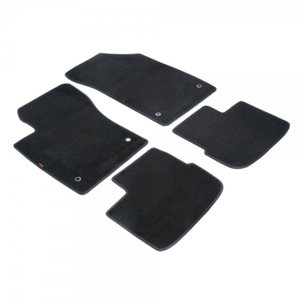 Πατάκια αυτοκινήτου από την εταιρία LAMPA, ιταλικής προέλευσης, κατασκευασμένα από υψηλής ποιότητας μοκέτα - 100% πολυπροπυλένιο - σε μαύρο χρώμα με περιμετρικό φινίρισμα από βελούρ ρέλι (απομίμηση βελούδου), σχεδιασμένα για να ταιριάζουν ακριβώς στις διαστάσεις του δαπέδου του εκάστοτε οχήματος - Συμβατά προϊόν. Είναι αδιάβροχα και διαθέτουν αντιολισθητικό πάτο ενισχυμένο με gel στο πίσω μέρος τους για καλύτερη πρόσφυση στο δάπεδο, καθώς και κουμπιά στερέωσης fix-points για όσα οχήματα είναι εξοπλισμένα με αντίστοιχες εργοστασιακές υποδοχές για να παραμένουν σταθερά στο πάτωμα της καμπίνας κατά την είσοδο/έξοδο των επιβατών.