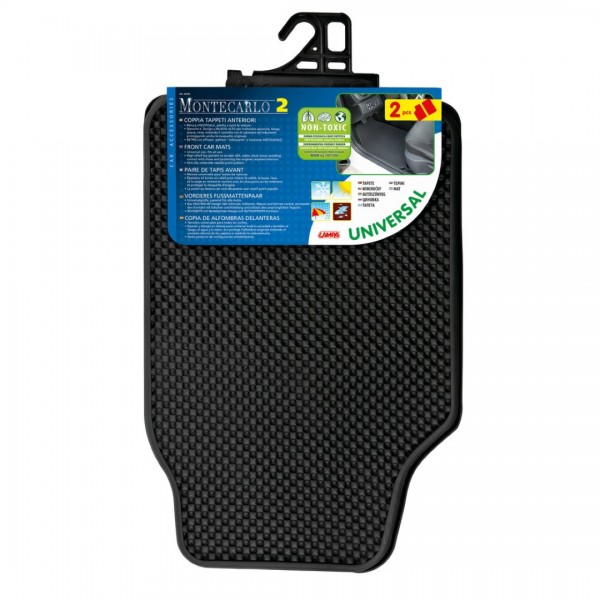 Πατάκια λάστιχο Montecarlo-2, κατασκευασμένα από άοσμο, οικολογικό λάστιχο, φιλικό προς το περιβάλλον με βάση από 100% συνθετικό ανακυκλώσιμο υλικό, ιταλικής προέλευσης από την εταιρία Lampa. Ιδανικά πατάκια για προστασία δαπέδου της εσωτερικής καμπίνας του οχήματός σας από νερό, λάσπη, σκόνη κ.α ή για να προστατεύσετε τις ήδη υπάρχουσες μοκέτες από την τριβή του παπουτσιού, βάζοντας τα πατάκια λάστιχο Montecarlo από πάνω. Είναι αντιολισθητικά στην πίσω πλευρά τους για καλύτερη σταθερότητα κατά την εφαρμογή. Κατάλληλα για την τοποθέτησή τους στα περισσότερα αυτοκίνητα.