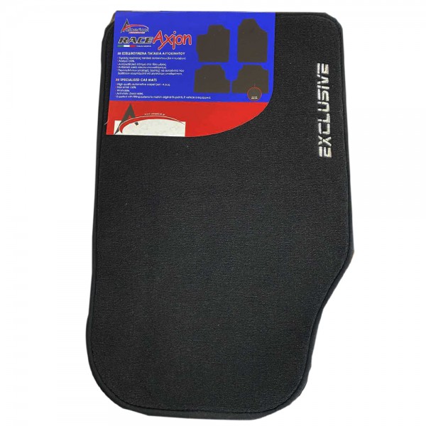 Πατάκια αυτοκινήτου της σειράς ΕXCLUSIVE από την εταιρεία RACE AXION, κατασκευασμένα από μοκέτα, με κομψό design και φινίρισμα από ρέλι (περιμετρικά) και αφρό στην πίσω όψη, ιδανικά για να προστατεύουν το δάπεδο του αυτοκινήτου, προσδίδοντας παράλληλα αισθητική. Διαθέτουν αντιολισθητικό πάτο για να παραμένουν σταθερά στο πάτωμα της καμπίνας. Έχουν universal εφαρμογή για να μπορούν να ταιριάξουν στα περισσότερα οχήματα, είναι κατάλληλα για όλες τις εποχές, ανθεκτικά στο χρόνο και παρέχουν υψηλή προστασία από βρωμιά, σκόνη, λάσπες και υγρασία. Πλένονται και καθαρίζονται, διατηρώντας το αρχικό τους σχήμα. Mε λογότυπο "EXCLUSIVE".