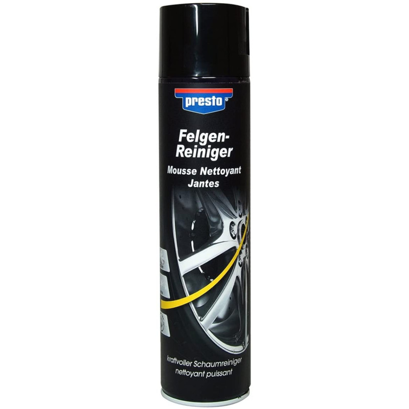 ΟΔΗΓΙΕΣ ΧΡΗΣΗΣ: Ανακινήστε πριν τη χρήση. Η ζάντα πρέπει να μην είναι ζεστή.  Ψεκάστε τη ζάντα με τον Presto Καθαριστικό Αφρό  και αφήστε τον να δράσει. Αφαιρέστε τη δύσκολη βρωμιά με μια βούρτσα καθαρισμού ζαντών αν χρειάζεται και ξεπλύνετε καλά με νερό και πίεση