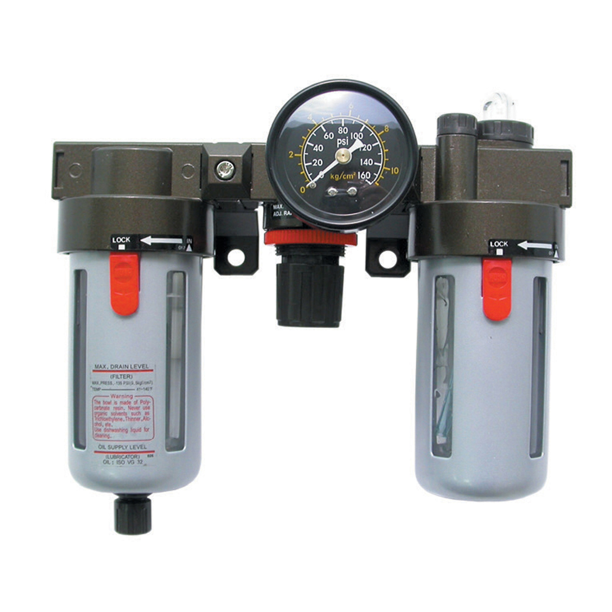 ? Ρύθμιση Πίεσης : 0,5-9 bar ? Μέγιστη Πίεση : 9,5 bar ? Ροή : 1000 L/min ? Φιλτράρισμα : 5 μ (5-60°C) ? Υδατοπαγίδα : 60 ml ? Ελαιωτήρας : 90 ml