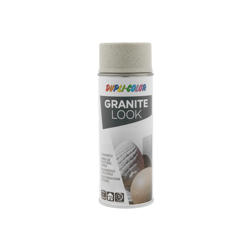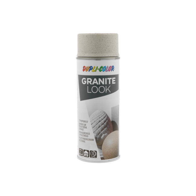 Οδηγίες χρήσης: Κατά την εφαρμογή ανοιχτόχρωμων αποχρώσεων Granit Style σε σκούρες επιφάνειες, εφαρμόστε πρώτα ένα ανοιχτόχρωμο αστάρι, για παράδειγμα DUPLI-COLOR Universal Primer. Συνιστάται τα πλαστικά αντικείμενα να ασταρώνονται με DUPLI-COLOR Plastic Primer. Αν χρειάζεται, τρίψτε ελαφρά την επιφάνεια. Αφαιρέστε τη σκόνη από το τρίψιμο. Η επιφάνεια πρέπει να είναι καθαρή, απόλυτα απαλλαγμένη από λίπη και στεγνή. Καλύψτε τις περιοχές που δεν θα βαφτούν. Ανακινήστε το δοχείο για 3 λεπτά. Δοκιμάστε το σπρέι σε μια μη ορατή περιοχή. Ψεκάστε από απόσταση περίπου 30 εκ. με αρκετές λεπτές στρώσεις σε διαστήματα 2 λεπτών. Για να σφραγίσετε και να προστατέψετε την υφή, μετά το στέγνωμα (24 ώρες), εφαρμόστε ένα βερνίκι (ειδικά για εξωτερική χρήση), π.χ. DUPLI-COLOR Zapon Spray.