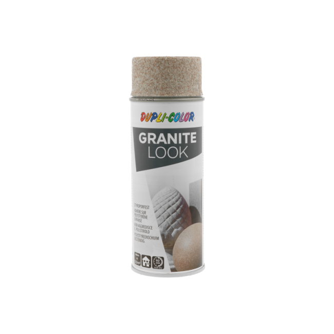 Οδηγίες χρήσης: Κατά την εφαρμογή ανοιχτόχρωμων αποχρώσεων Granit Style σε σκούρες επιφάνειες, εφαρμόστε πρώτα ένα ανοιχτόχρωμο αστάρι, για παράδειγμα DUPLI-COLOR Universal Primer. Συνιστάται τα πλαστικά αντικείμενα να ασταρώνονται με DUPLI-COLOR Plastic Primer. Αν χρειάζεται, τρίψτε ελαφρά την επιφάνεια. Αφαιρέστε τη σκόνη από το τρίψιμο. Η επιφάνεια πρέπει να είναι καθαρή, απόλυτα απαλλαγμένη από λίπη και στεγνή. Καλύψτε τις περιοχές που δεν θα βαφτούν. Ανακινήστε το δοχείο για 3 λεπτά. Δοκιμάστε το σπρέι σε μια μη ορατή περιοχή. Ψεκάστε από απόσταση περίπου 30 εκ. με αρκετές λεπτές στρώσεις σε διαστήματα 2 λεπτών. Για να σφραγίσετε και να προστατέψετε την υφή, μετά το στέγνωμα (24 ώρες), εφαρμόστε ένα βερνίκι (ειδικά για εξωτερική χρήση), π.χ. DUPLI-COLOR Zapon Spray.