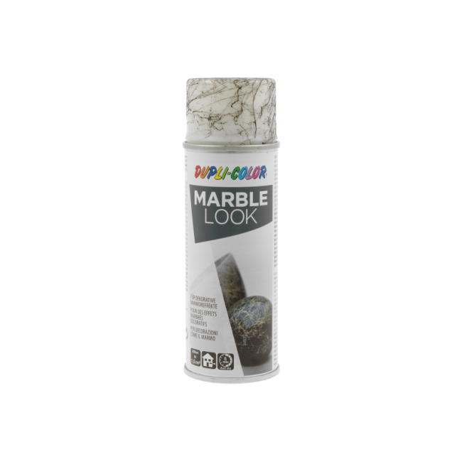 Το χρώμα και ο βαθμός γυαλάδας διαμορφώνουν καθοριστικά το τελικό αποτέλεσμα. Η επιφάνεια πρέπει να είναι καθαρή, στεγνή και απολύτως απαλλαγμένη από λίπη. Καλύψτε τις περιοχές που δεν θέλετε να βαφτούν. Ανακινήστε το δοχείο για 3 λεπτά. Δοκιμάστε το σπρέι σε μια μη ορατή περιοχή. Η απόσταση ψεκασμού πρέπει να είναι περίπου 30 εκ. Το αποτέλεσμα εξαρτάται από τη δημιουργικότητα του χρήστη και το επιθυμητό εφέ. Συνιστούμε να ψεκάζετε με σύντομα «σπρέι-παρτίδες», σχεδόν «αυθόρμητα». Για να προστατέψετε το αποτέλεσμα, μετά το στέγνωμα, μπορείτε να σφραγίσετε τη μαρμάρινη υφή με διαφανές βερνίκι DUPLI-COLOR, π.χ. Zapon Spray.