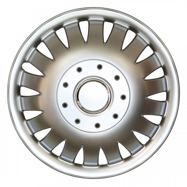 Κατασκευασμένα από υψηλής ποιότητας πλαστικό, καμπυλωτά, βαμμένα σε ασημί γυαλιστερό χρώμα, εξοπλισμένα με νίκελ δακτυλίδια για να στερεωσέτε το σήμα της εκάστοτε μάρκας και ειδική εγκοπή για τη βαλβίδα του αέρα των ελαστικών του οχήματος.