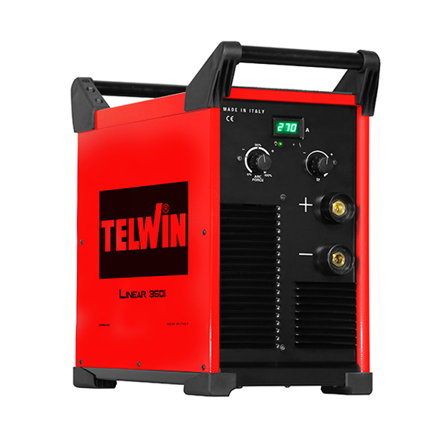 Μηχανή συγκόλλησης ηλεκτρόδιου συνεχούς ρεύματος (DC) και TIG με Scratch TELWIN LINEAR 350i.  Χρησιμοποιήστε την με ένα ευρύ φάσμα υλικών ηλεκτροδίου όπως ρουτίλιο, βασικό, χάλυβα, ατσάλι, ανοξείδωτο ατσάλι και χυτοσίδηρο