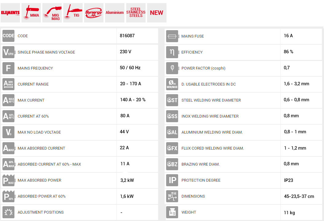 • Πλήρης με τσιμπίδα MIG-MAG και γείωση.