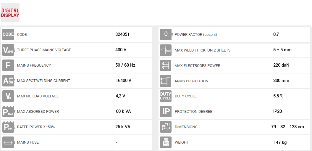 Σταθερή πόντα TELWIN PTE 28 LCD με κινητούς βραχίονες, ψηφιακά ελεγχόμενη από μικροεπεξεργαστή. Ο ψηφιακός πίνακας ελέγχου LCD επιτρέπει την επιλογή από λειτουργία EASY (ρύθμιση του σημείου και του χρόνου συγκόλλησης) σε λειτουργία EXPERT (ρύθμιση διαφορετικών παραμέτρων σημείων συγκόλλησης), αποθηκεύοντας μέχρι 20 προσαρμοσμένα προγράμματα. Λειτουργεί τόσο σε συνεχή όσο και σε παλμική λειτουργία και παρέχει βέλτιστα αποτελέσματα σε διάφορα είδη χάλυβα.