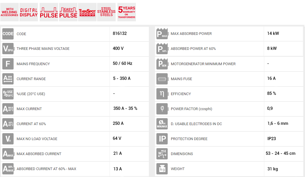 • THINSPOT : Eίναι μια υπερσύγχρονη λειτουργεία που επιτρέπει τη συγκόλληση TIG από λεπτό μεταλλικό φύλλο με εύκολο, γρήγορο και ακριβή τρόπο. Ιδιαίτερα σχεδιασμένο για χρήση σε ανοξείδωτο χάλυβα, μπορεί επίσης να χρησιμοποιηθεί σε χάλυβα και τιτάνιο. Ο έλεγχος του τόξου και η δυνατότητα καθορισμού των εξαιρετικά μειωμένων χρόνων εκκίνησης τόξου καθιστούν δυνατή τη σημαντική μείωση του θερμικού φορτίου κάθε κομματιού, μειώνοντας τον κίνδυνο διάτρησης που προκαλείται από υπερβολική υπερθέρμανση. Το αποτέλεσμα είναι ένα σημείο συγκόλλησης του οποίου η ποιότητα είναι παρόμοια με εκείνη του χρονισμού με λέιζερ, καθώς και η αυξημένη προστασία του βασικού υλικού (ειδικά από ανοξείδωτο ατσάλι), μειώνοντας την πιθανότητα διάβρωσης, ενώ επιτρέποντας υψηλότερες ταχύτητες εκτέλεσης, όλα αυτά λειτουργούν προς όφελος της παραγωγικότητας που είναι υψηλότερη σε σύγκριση με την παραδοσιακή μέθοδο συγκόλλησης TIG.