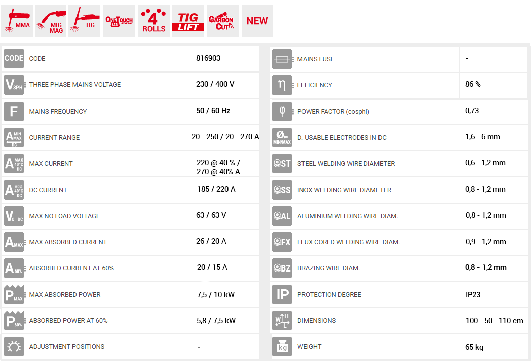 • SYNERGIC :Ο έξυπνος και αυτόματος έλεγχος του τόξου, κάθε στιγμή, διατηρεί υψηλή απόδοση συγκόλλησης σε όλες τις συνθήκες εργασίας, με διαφορετικά υλικά, πάχη και / ή αέρια.