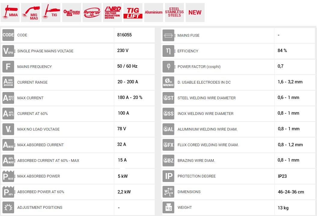 • Πλήρης με τσιμπίδα MIG-MAG και γείωση.